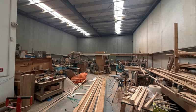 This versatile space features a high-stud warehouse with easy access via a large roller door, ideal for logistics and storage needs. The upstairs office features expansive windows that offer views of the warehouse.
