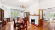 The beautifully restored 240 sq m (more or less) bungalow features three bedrooms, two bathrooms, a formal dining room, and a large lounge and family room equipped with a Mega Rad fireplace, all complemented by matai floors and intricate plasterwork.