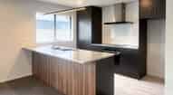 Kitchen with Fisher and Paykel stove, rangehood, dishwasher and walk in pantry