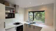 - Modern kitchen with easy access to living and dining areas