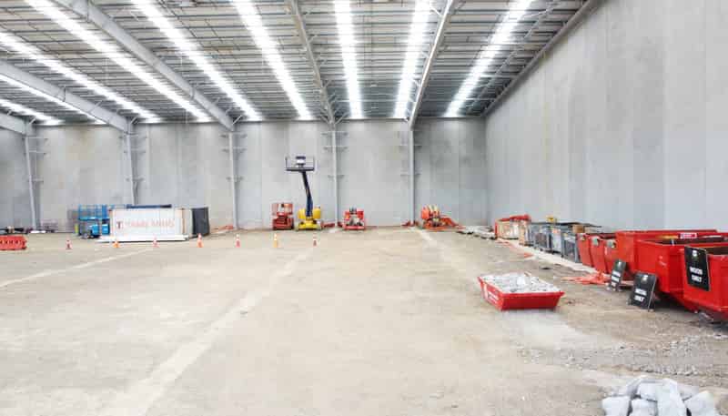 A brand-new warehouse nearing completion on the corner of Ti Rakau Drive and Trugood Drive, East Tamaki.