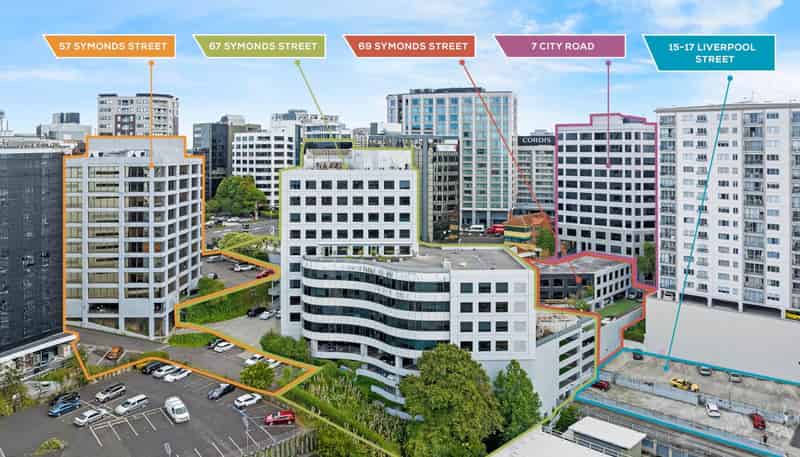 57, 67 & 69 Symonds Street, 7 City Road and 15-17 Liverpool Street are being offered for sale, individually or together, via an Expressions of Interest (EOI) campaign closing 4:00pm, Wednesday 8 April 2026 (unless sold prior).