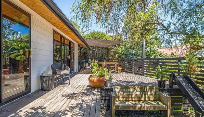 Step outside to a generous deck, perfect for entertaining or relaxing, with views over the established gardens. The property also includes a large lawn area, garden spaces, and a peaceful, private atmosphere rarely found.