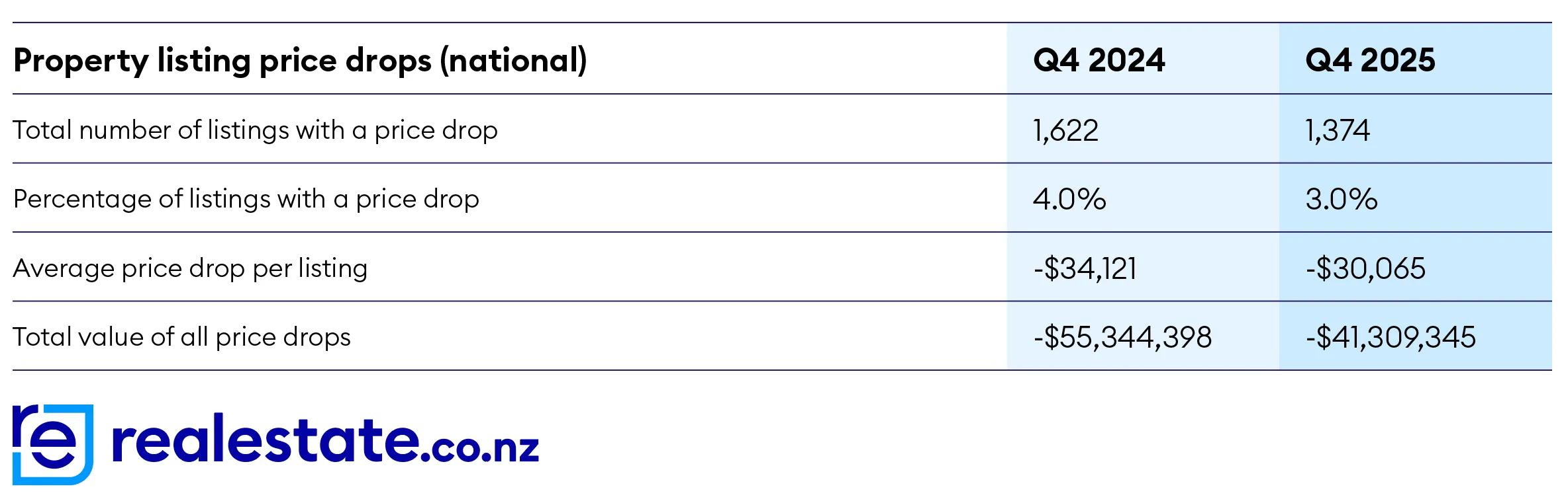 Latest data from realestate.co.nz shows that more than $40 million was trimmed from property asking prices across New Zealand in the last quarter of 2025.